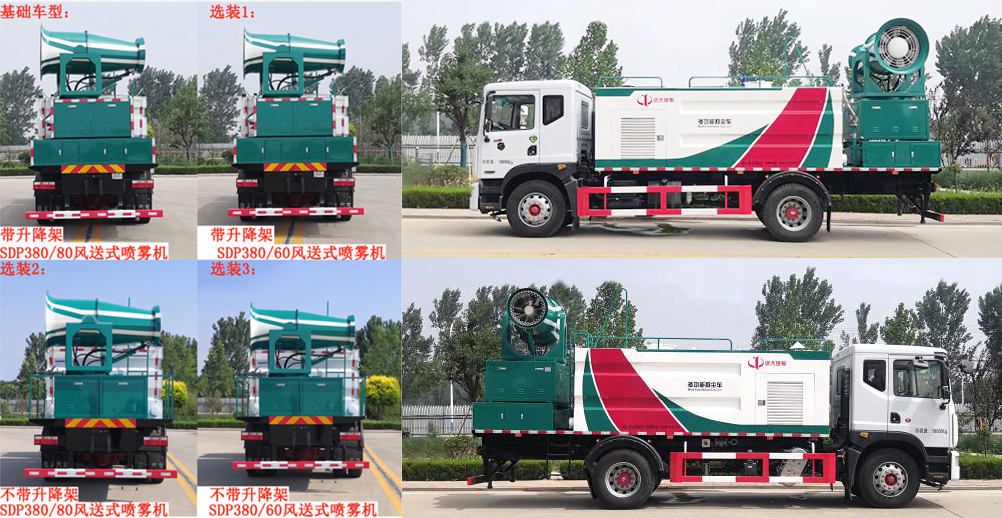 隨底盤選裝駕駛室;僅選用4500mm的軸距.選裝升降架和SDP380/60風(fēng)送式噴霧機(jī),基礎(chǔ)車型為帶升降架的SDP380/80風(fēng)送式噴霧機(jī),高度(mm)/整備質(zhì)量(kg)/額定載質(zhì)量(kg)的對應(yīng)關(guān)系為:3860/9670/8135(不帶升降架SDP380/60風(fēng)送式噴霧機(jī));3860/10620/7185(不帶升降架SDP380/80風(fēng)送式噴霧機(jī));3980/10200/7605(帶升降架SDP380/60風(fēng)送式噴霧機(jī));3980/11150/6655(帶升降架SDP380/80風(fēng)送式噴霧機(jī)).側(cè)后防護(hù)采用Q235A材質(zhì),側(cè)防護(hù)螺栓連接.后部防護(hù)焊接,后防護(hù)斷面尺寸(mm):60×120,后部防護(hù)離地高度(mm):410;ABS系統(tǒng)生產(chǎn)廠家,型號 :焦作博瑞克控制技術(shù)有限公司,JABS.選裝限速裝置,限速89.專用裝置為噴霧系統(tǒng)裝置、水箱,主要用于道路、廣場或固定場所除霾降塵等作業(yè); |