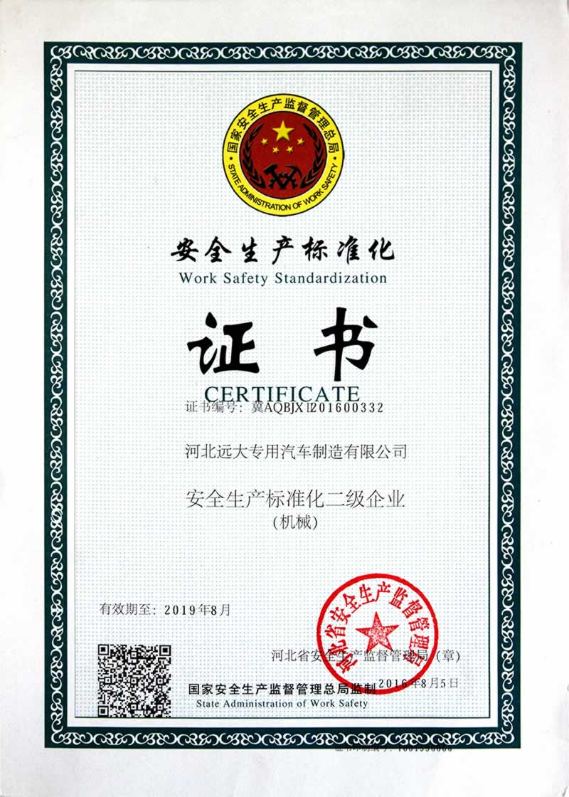 安全生產(chǎn)標準化證書