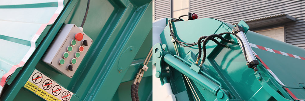隨底盤選裝前面罩,前保險杠,前組合燈具;基本型(翻桶裝置)整車長度為6700mm,后伸量為320mm;選裝料斗裝置時整車長度為6380mm,整備質(zhì)量變化在標準允許范圍內(nèi)。側(cè)防護材料/Q235A,連接方式為螺栓連接;后防護由專用裝置替代,下邊緣離地高370mm.4.ABS型號/廠家:ABS/ASR-12V-4S/4M/襄陽東風隆誠機械有限責任公司.發(fā)動機與油耗值(L/100km)的對應關(guān)系為:D20TCIF1/16.2,YCY24140-60/16.2,CA4DB1-11E6/16.2,ZD30D16-6N/16.2,CY4BK461/16.2,CY4BK161/16.2,Q23-115E60/14.5,H20-120E60/14.9.該車通過垃圾箱,填裝機構(gòu)等裝置,達到垃圾收集裝填及推擠卸料的作業(yè)功能.