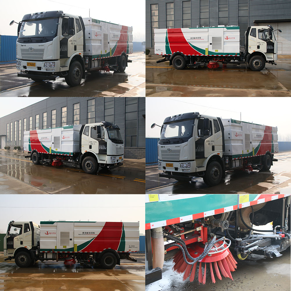 功能多,一車頂多車 具有路面清掃、路面洗掃、路沿和路沿石立面洗刷、低壓沖洗和噴霧降塵、低壓沖洗等多種功能??勺鳛閽呗奋嚒⑾磼哕?、路沿清洗車、灑水車和噴霧降塵車使用。用作掃路車時,清水箱容積大,達(dá)9m3,可作業(yè)8h。用作洗掃車時,一遍洗掃作業(yè),路面洗凈率可達(dá)96%以上。清洗路沿時,可同時對路沿石立面、貼近路沿的道路路面進(jìn)行洗刷,對路沿石頂面進(jìn)行沖刷,并將污水和垃圾收走,能很好地解決路沿的清洗保潔問題。