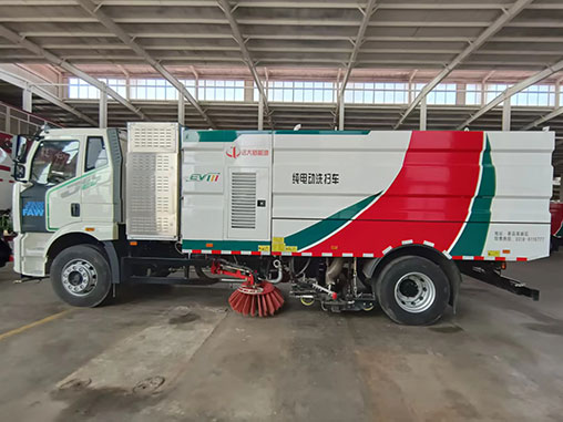 1、功能多,一車頂多車:具有路面清掃、路面洗掃、路沿和路沿石立面洗刷、低壓沖洗和噴霧降塵、低壓沖洗等多種功能??勺鳛閽呗奋?、洗掃車、路沿清洗車、灑水車和噴霧降塵車使用。用作掃路車時,清水箱容積大,達7m3,一次可作業(yè)8h。用作洗掃車時,一遍洗掃作業(yè),路面洗凈率可達95%以上。清洗路沿時,可同時對路沿石立面、貼近路沿的道路路面進行洗刷,對路沿石頂面進行沖刷,并將污水和垃圾收走,能很好地解決路沿的清洗保潔問題。